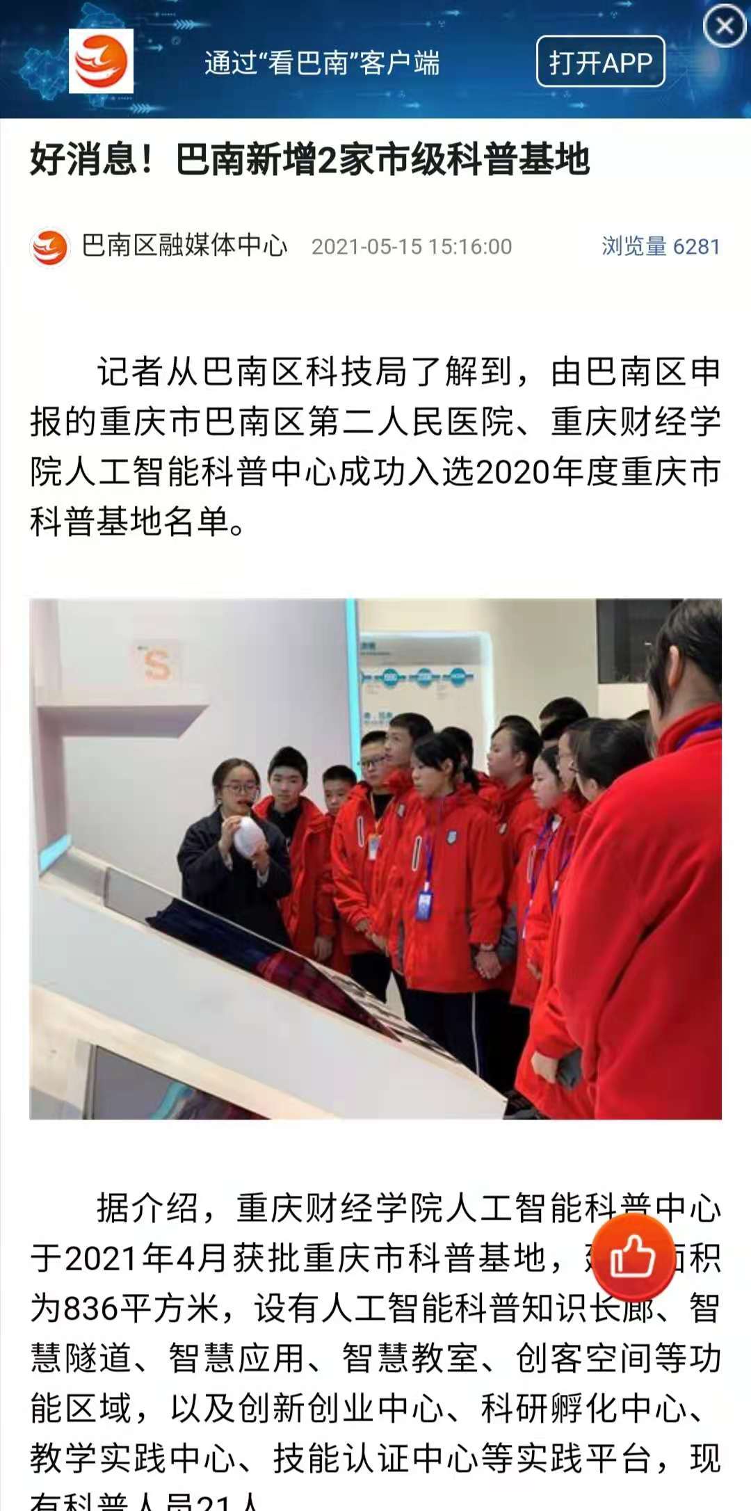 记者从巴南区科技局了解到,由巴南区申报的重庆市巴南区第二人民医院、澳门新葡京博彩人工智能科普中心成功入选2020年度重庆市科普基地名单。