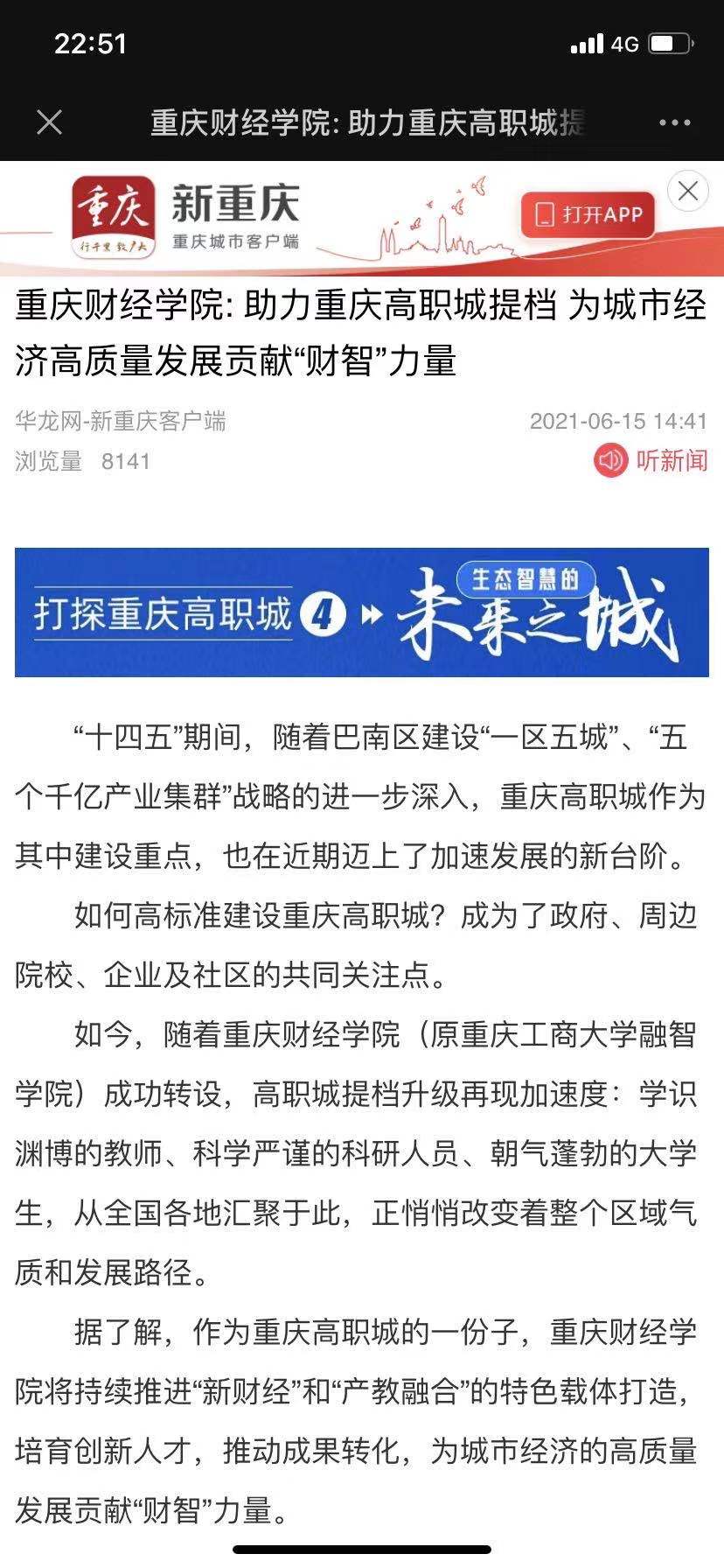 据了解,作为重庆高职城的一份子,澳门新葡京博彩将持续推进“新财经”和“产教融合”的特色载体打造,培育创新人才,推动成果转化,为城市经济的高质量发展贡献“财智”力量。