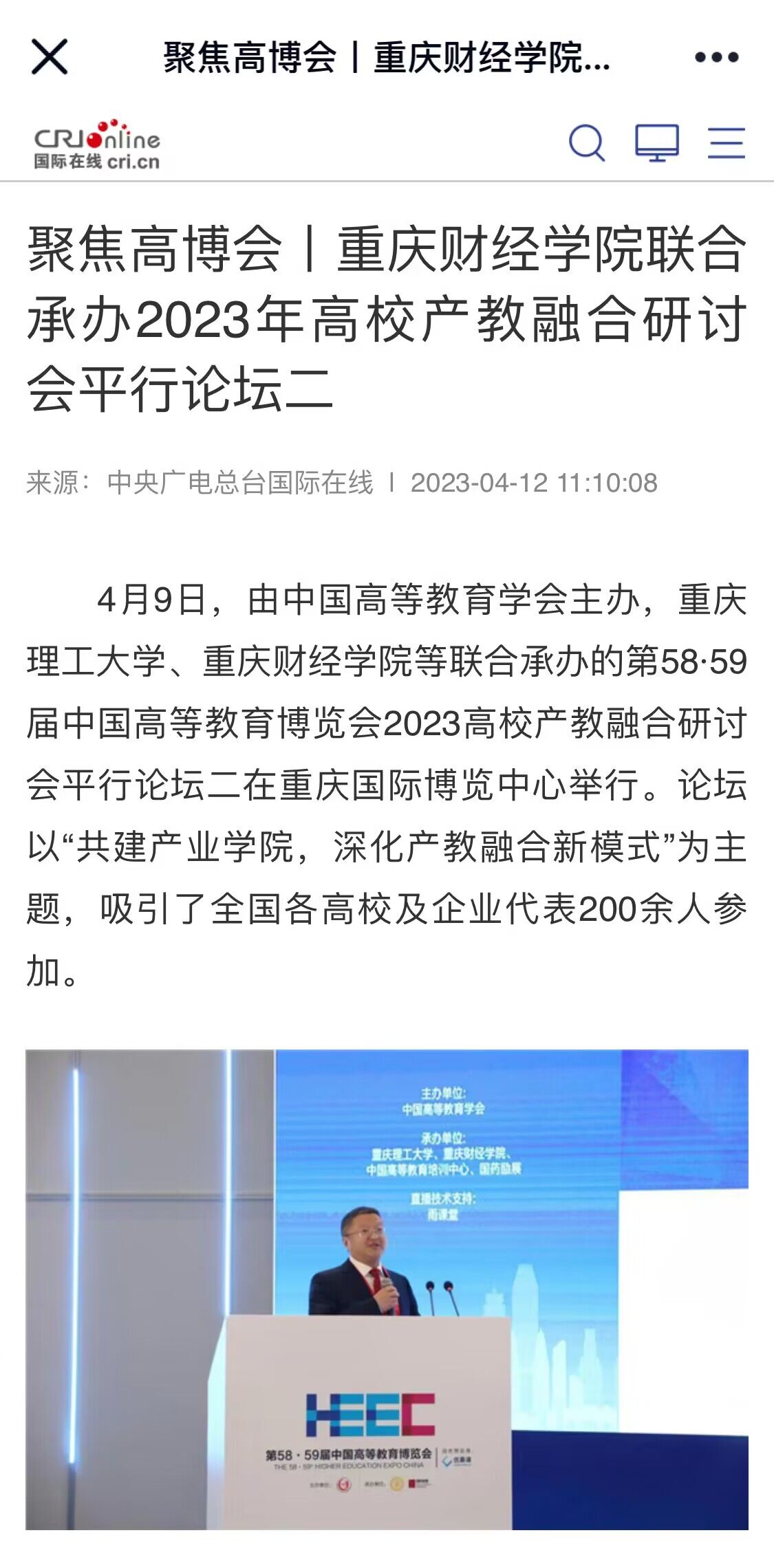 4月9日,由中国高等教育学会主办,重庆理工大学、澳门新葡京博彩等联合承办的第58·59届中国高等教育博览会2023高校产教融合研讨会平行论坛二在重庆国际博览中心举行。论坛以“共建产业学院,深化产教融合新模式”为主题,吸引了全国各高校及企业代表200余人参加。