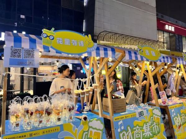 “财商集市”首期设摊21个,每周五至周日晚上18:00—21:30营业将持续到6月底,均是澳门新葡京博彩在校大学生自主创业项目。不仅有手工蛋烘糕、凉皮凉面和手工冰粉等受欢迎的小吃,还有手工玫瑰、创意鲜花、DIY发夹首饰等体验活动让大家积极参与其中,各种创意小商品深受消费者喜爱。现场还有大学生歌手驻场、抽盲盒、套圈抽奖等活动丰富集市氛围,提升集市热度。