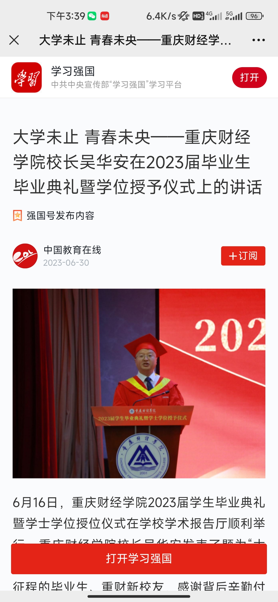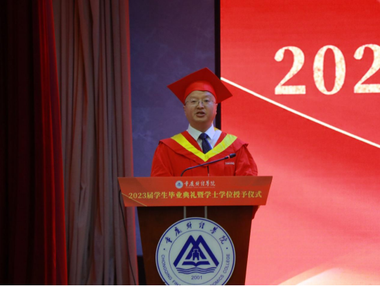 今天我们在这里隆重举行2023届毕业典礼,共同祝福即将踏上新征程的4162名毕业生、重财新校友。在此,我谨代表你们的校长、师长和老朋友,向学有所成的你们,致以最热烈地祝贺和最美好地祝愿!向辛勤培育你们的老师、含辛茹苦养育你们的家长,表示最衷心地感谢!