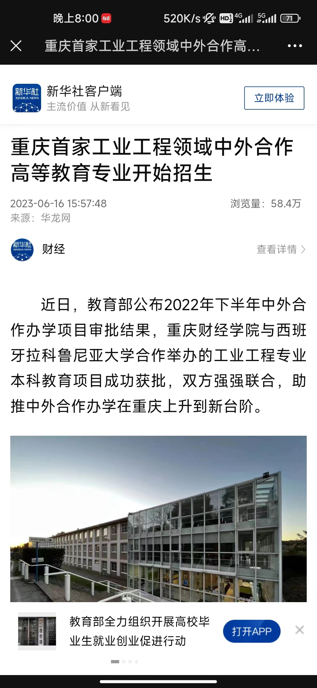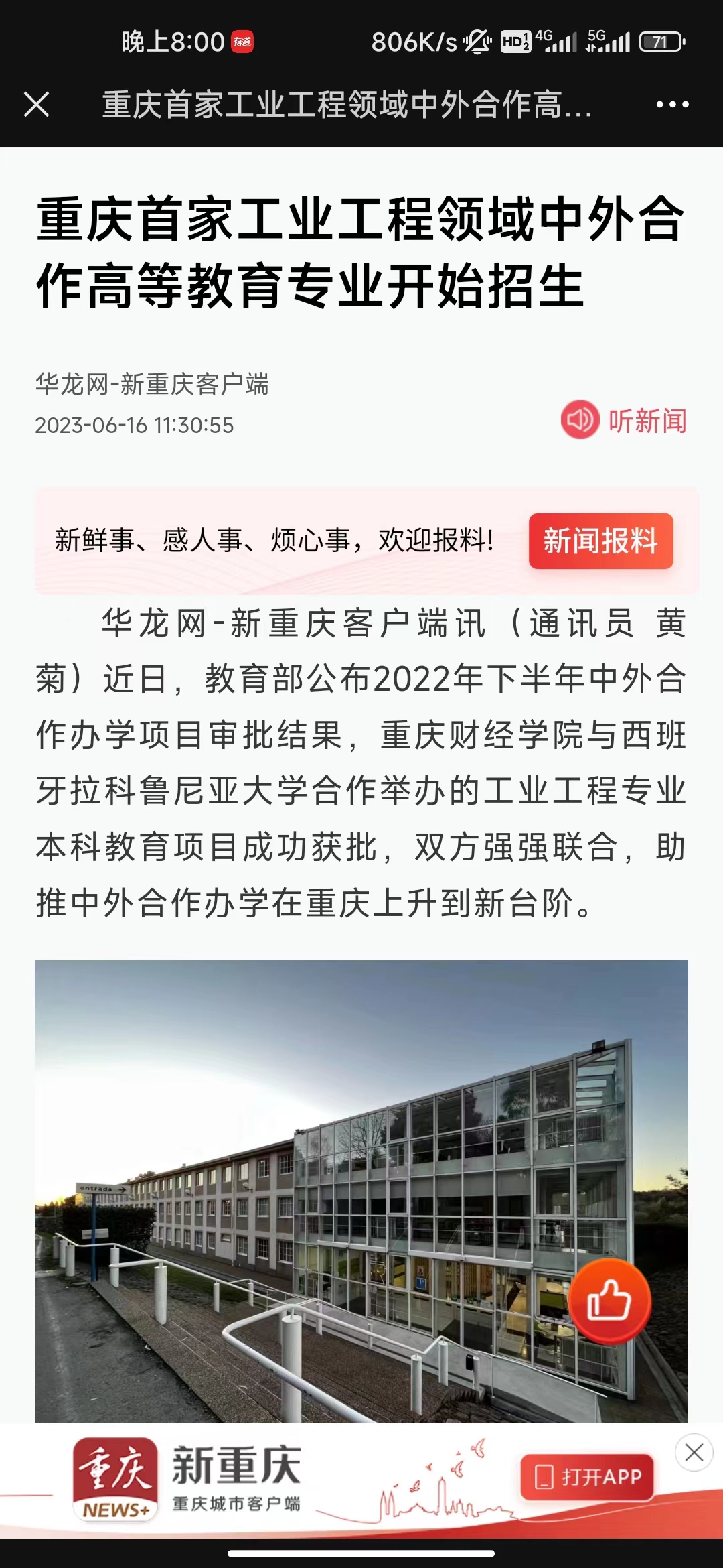 近日,教育部公布2022年下半年中外合作办学项目审批结果,澳门新葡京博彩与西班牙拉科鲁尼亚大学合作举办的工业工程专业本科教育项目成功获批,双方强强联合,助推中外合作办学在重庆上升到新台阶。 据悉,这是澳门新葡京博彩获批的首个中外合作办学项目,也是2022年重庆市唯一获批项目,实现了澳门新葡京博彩中外合作办学项目零的突破,是学校国际化办学的重要里程碑。 拉科鲁尼亚大学是西班牙知名公立大学,位于西班牙西北部的加利西亚区科鲁尼亚省首府。学校在工业工程专业师资力量雄厚,毕业生在西班牙就业率100%。 在重庆财经学院20余年的办学过程中,学校积淀形成了新财经集聚发展和产教融合人才培养两大特色。本次与拉科鲁尼亚大学合作办学,是学校长期坚持开放办学的成果,还可带动相关学科与专业发展,提升师资队伍国际化水平,助力国际化人才培养,增强学校办学特色与办学活力。 同时,学校先后与来自英国、美国、加拿大、捷克、澳大利亚、韩国、俄罗斯、马来西亚、泰国、马里、贝宁和新西兰等17个国家的30余所高校建立了合作关系,在走向世界的开放办学思路,积极对接“一带一路”倡议下,成为坚定的高等教育改革助推者。 按照相关要求,双方合作办学专业全面贯彻党的教育方针,坚持社会主义办学方向,须参加全国统一普通招生考试,并达到录取线,才有机会报考工业工程专业。 该专业将严格按照中外合作办学项目的人才培养计划,拉科鲁尼亚大学派遣最优师资团队,保障项目质量。本科学制四年,拉科鲁尼亚大学也将在语言学习、学期交换学习、2+2双学位及硕博连读等方面给予项目学生最大支持。 根据澳门新葡京博彩招生简章显示,今年工业工程专业本科将招收首批次70名学子。两校将协同发力,探索国际化人才培养新模式,为中、西两国发展输送西班牙语水平高、工业工程专业能力强的复合型人才。 媒体链接:https://h.xinhuaxmt.com/vh512/share/11553022?d=134b1d8&channel=weixin https://chongqing.eol.cn/cqgd/202306/t20230616_2444336.shtml https://news.cqnews.net/1/detail/1119228449605685248/app/content_1119228449605685248.html http://mp.weixin.qq.com/s?__biz=MzA5MzQ4MjUxNg==&mid=2651013030&idx=7&sn=db9fcb26bfd350cd5c017c061eb80cb6&chksm=8baaa4ddbcdd2dcbc14c7a47c8225a7e6738d309150f8103c87c6676d7c851e4a908a77db660&mpshare=1&scene=23&srcid=06248P6cIvHCqQf5wXIMtV4w&sharer_sharetime=1688645371360&sharer_shareid=ac696b99a6e42a37c2b63173ba5ac6ea#rd