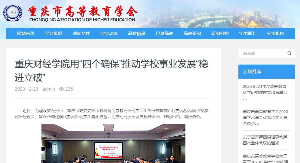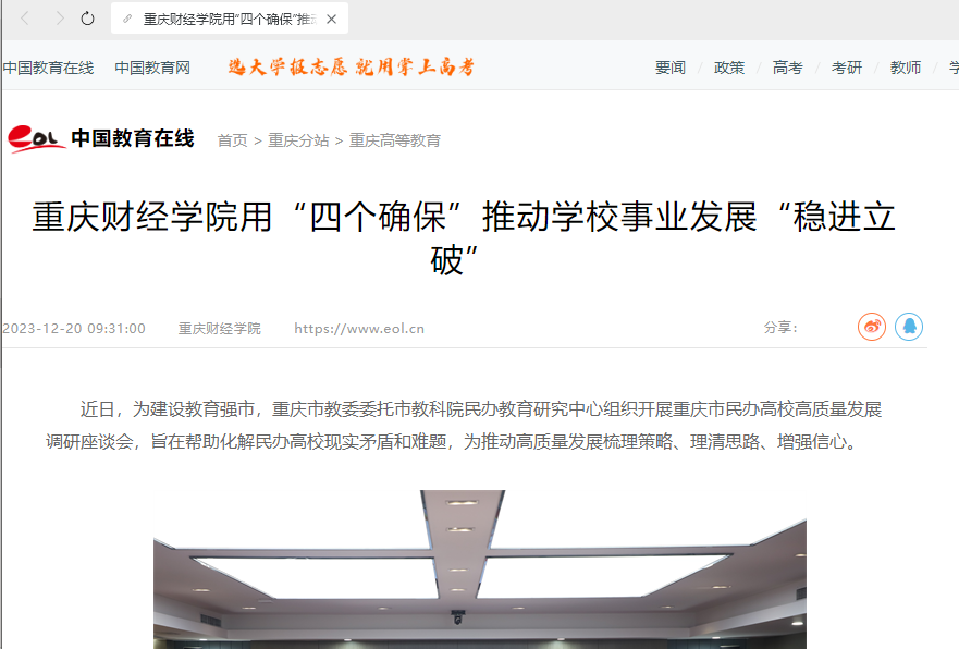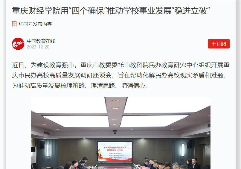 近日,为建设教育强市,市教委委托市教科院民办教育研究中心组织开展重庆市民办高校高质量发展调研座谈会。校长吴华安参会并作交流发言。