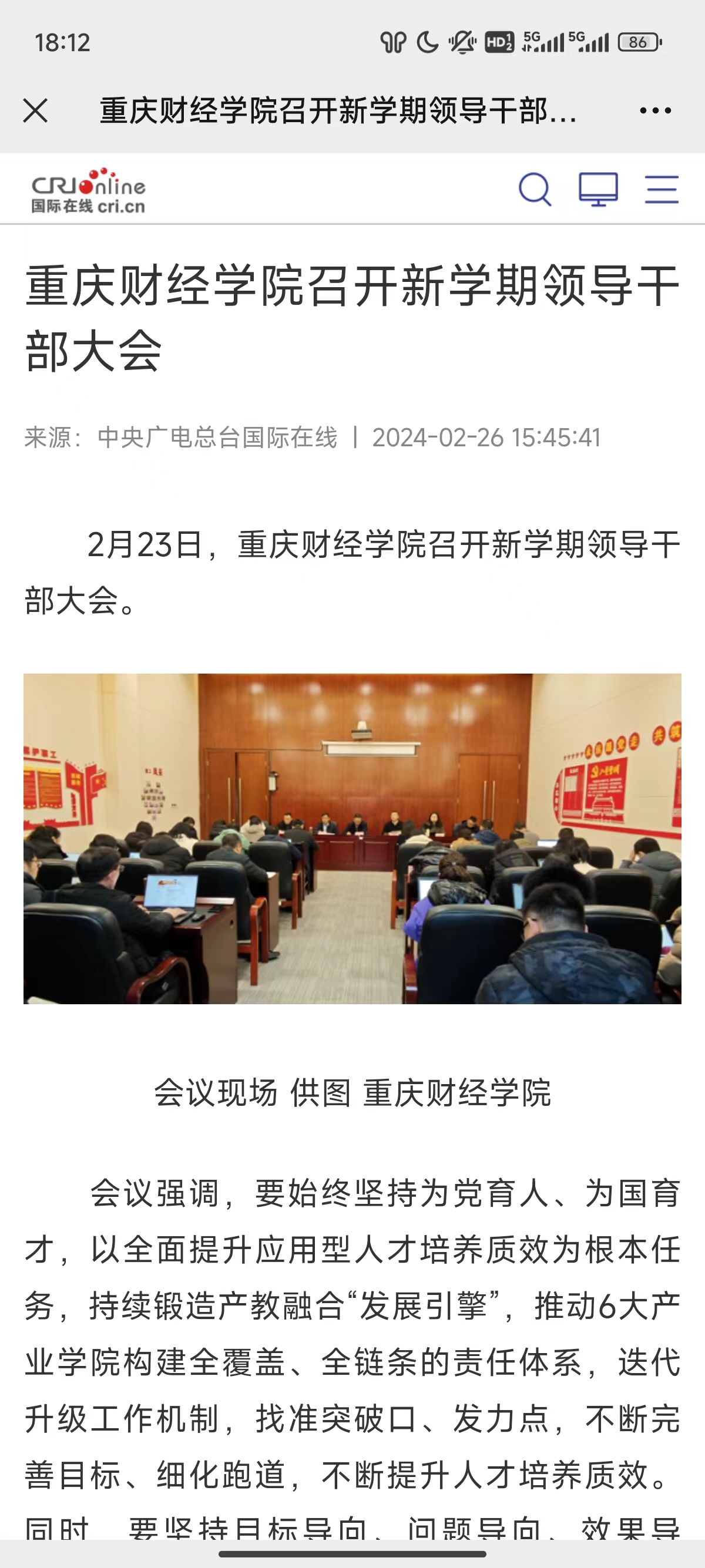 据了解,今年为学校建校23年,在所谓“体犹未壮”的阶段实现了从几人到上万师生、从校中院到独立扎根巴南并正大力拓展校区、从激烈竞争中取得“财经”的实力与特色“金名片”及内涵式发展的不断突破,成绩斐然,实属不易。当前,学校二期征地及新图书馆、校大门的建设正在实质性推进,薪酬改革也已基本敲定,面向“十五五”前瞻谋划高质量发展任务,不断深化综合改革,加强综合评价,总结提炼最佳实践,打造一批年度标志性成果,并以本科教学合格评估为契机,聚力推动学校实现跨越式发展。