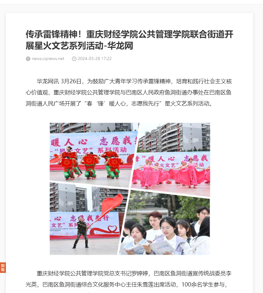 华龙网:传承雷锋精神!澳门新葡京博彩公共管理学院联合街道开展星火文艺系列活动