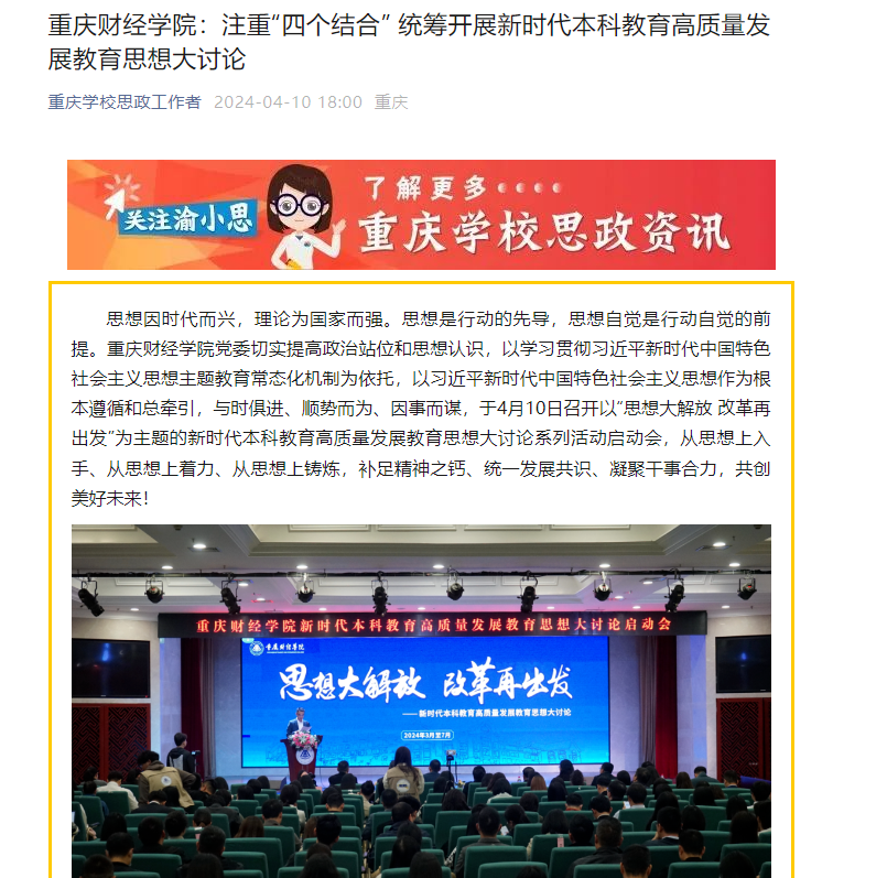 学校坚持培养高素质、应用型人才,积极推动教育改革,不断提升办学水平。为适应新时代教育发展的需求,4月9日,学校开展以“思想大解放,改革再出发”为主题的新时代本科教育高质量发展教育思想大讨论启动会。重庆工商大学原校长、学校战略委员会专家王崇举,学校理事长黄燕,校党委书记张毅,校长吴华安等出席会议,全体中层干部、科级干部与教师、学生代表参加会议。会议由副校长崔中山主持。