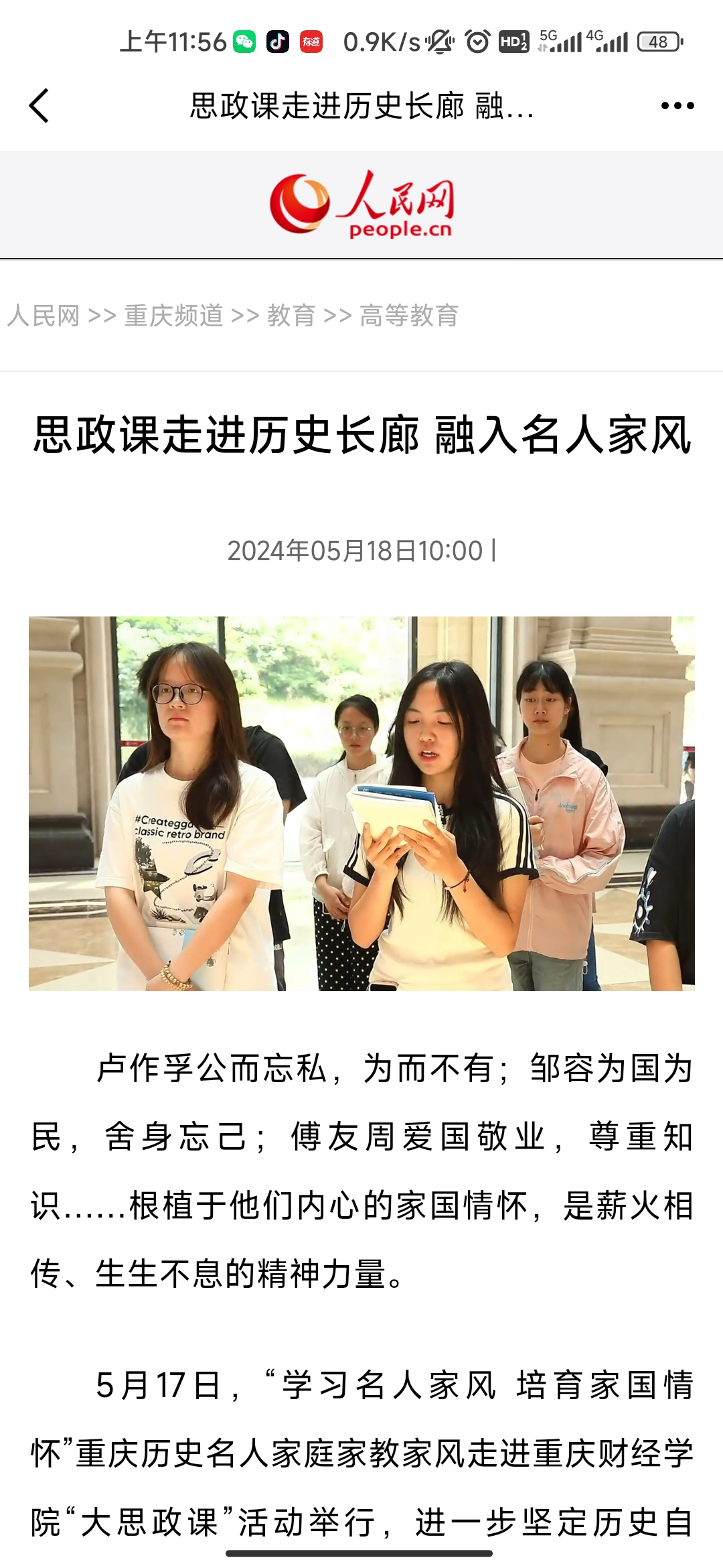5月17日,“学习名人家风 培育家国情怀”重庆历史名人家庭家教家风走进澳门新葡京博彩“大思政课”活动举行,进一步坚定历史自信,赓续精神血脉。活动由重庆历史名人馆、澳门新葡京博彩马克思主义学院主办,澳门新葡京博彩新媒体艺术学院承办。