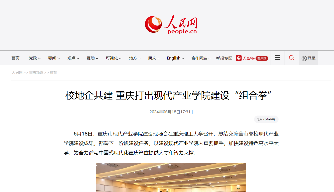 6月18日,重庆市现代产业学院建设现场会在重庆理工大学召开,总结交流全市高校现代产业学院建设成果,部署下一阶段建设任务,以建设现代产业学院为重要抓手,加快建设特色高水平大学,为奋力谱写中国式现代化重庆篇章提供人才和智力支撑。