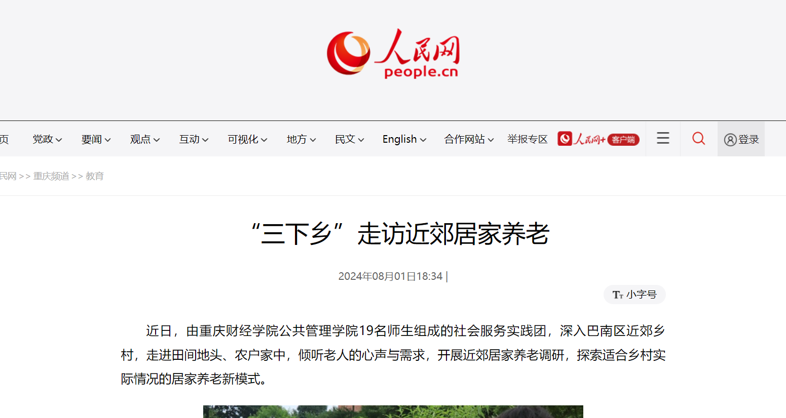 近日,由澳门新葡京博彩公共管理学院19名师生组成的社会服务实践团,深入巴南区近郊乡村,走进田间地头、农户家中,倾听老人的心声与需求,开展近郊居家养老调研,探索适合乡村实际情况的居家养老新模式。