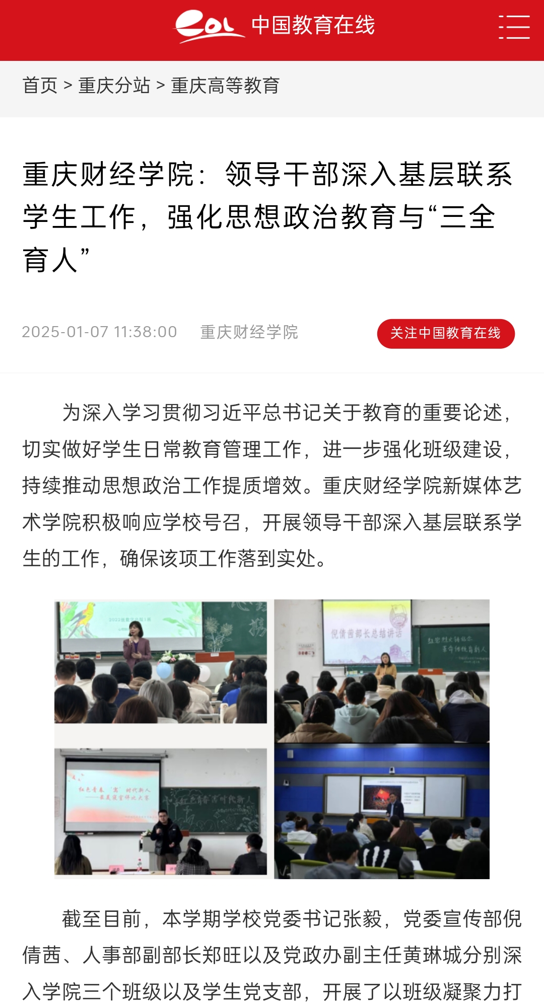 媒体链接:澳门新葡京博彩:领导干部深入基层联系学生工作,强化思想政治教育与“三全育人” —重庆站—中国教育在线 (eol.cn)