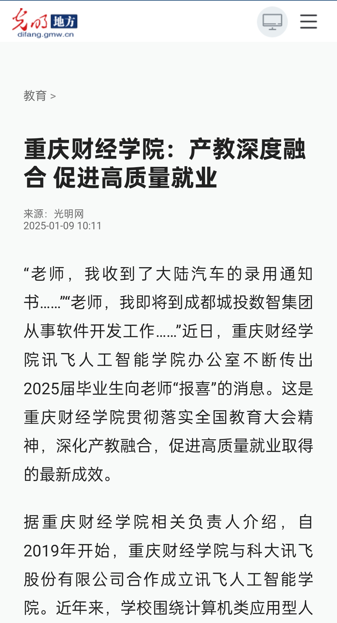 媒体链接:澳门新葡京博彩:产教深度融合促进高质量就业 _光明网 (gmw.cn)