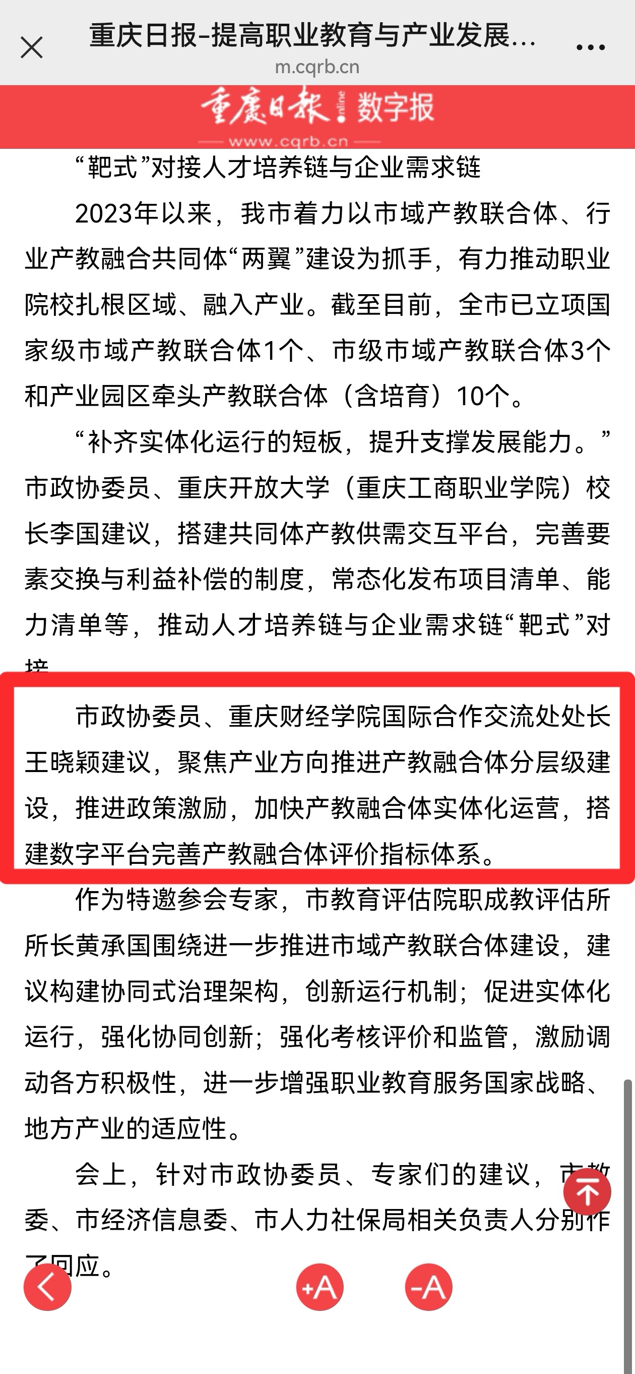 媒体链接:重庆日报-提高职业教育与产业发展适配度 (cqrb.cn)