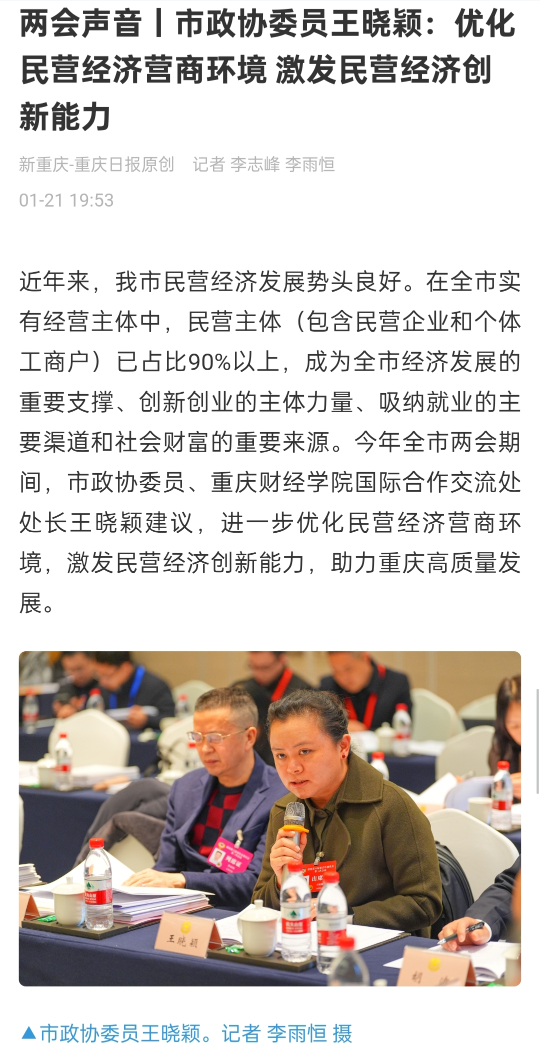 媒体链接:两会声音|市政协委员王晓颖:优化民营经济营商环境 激发民营经济创新能力 (cqrb.cn)
