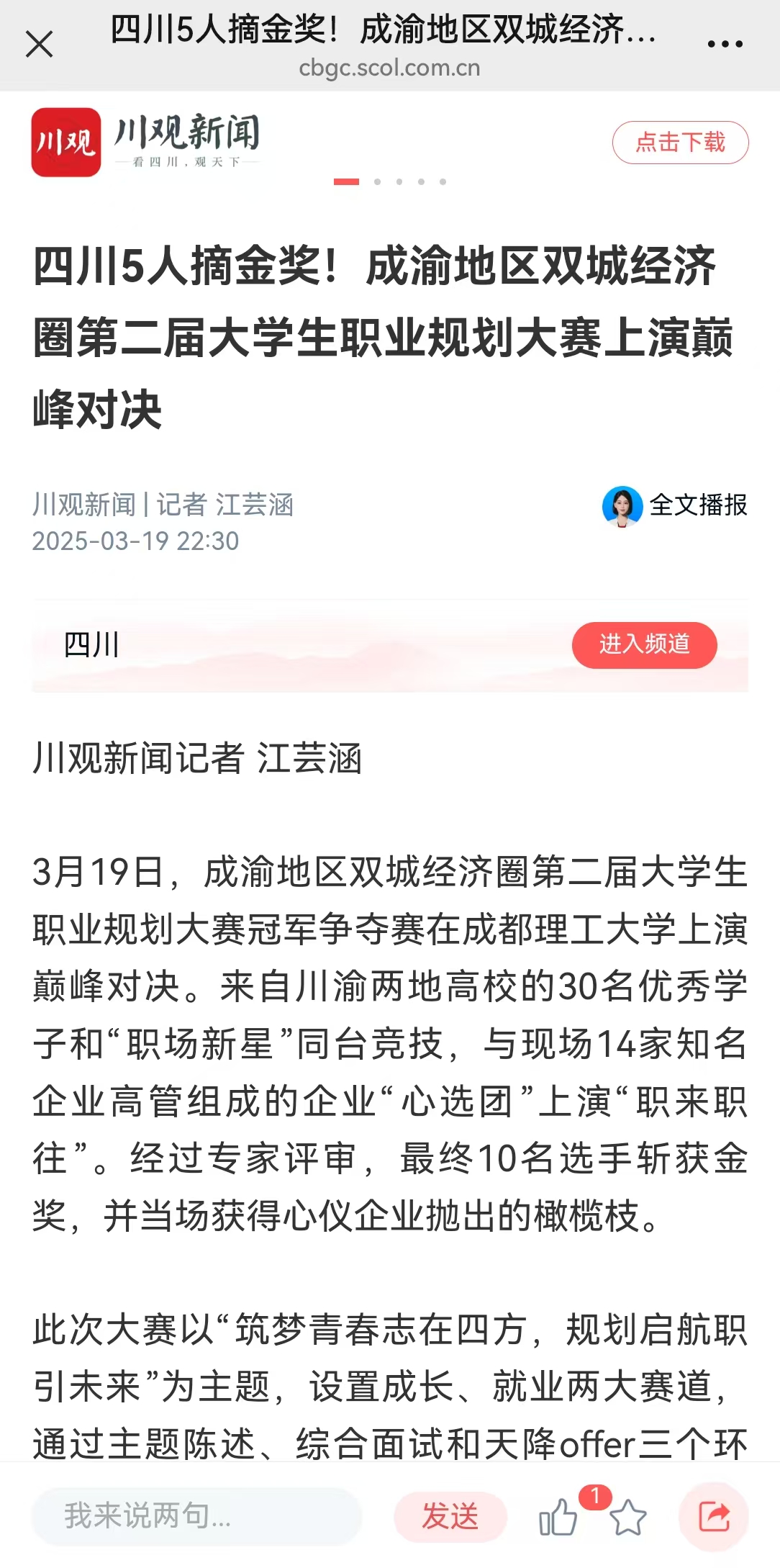 四川5人摘金奖!成渝地区双城经济圈第二届大学生职业规划大赛上演巅峰对决 - 川观新闻
