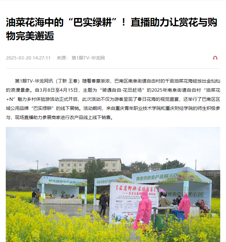 相关链接:油菜花海中的“巴实绿耕”!直播助力让赏花与购物完美邂逅-华龙网 (cqnews.net)