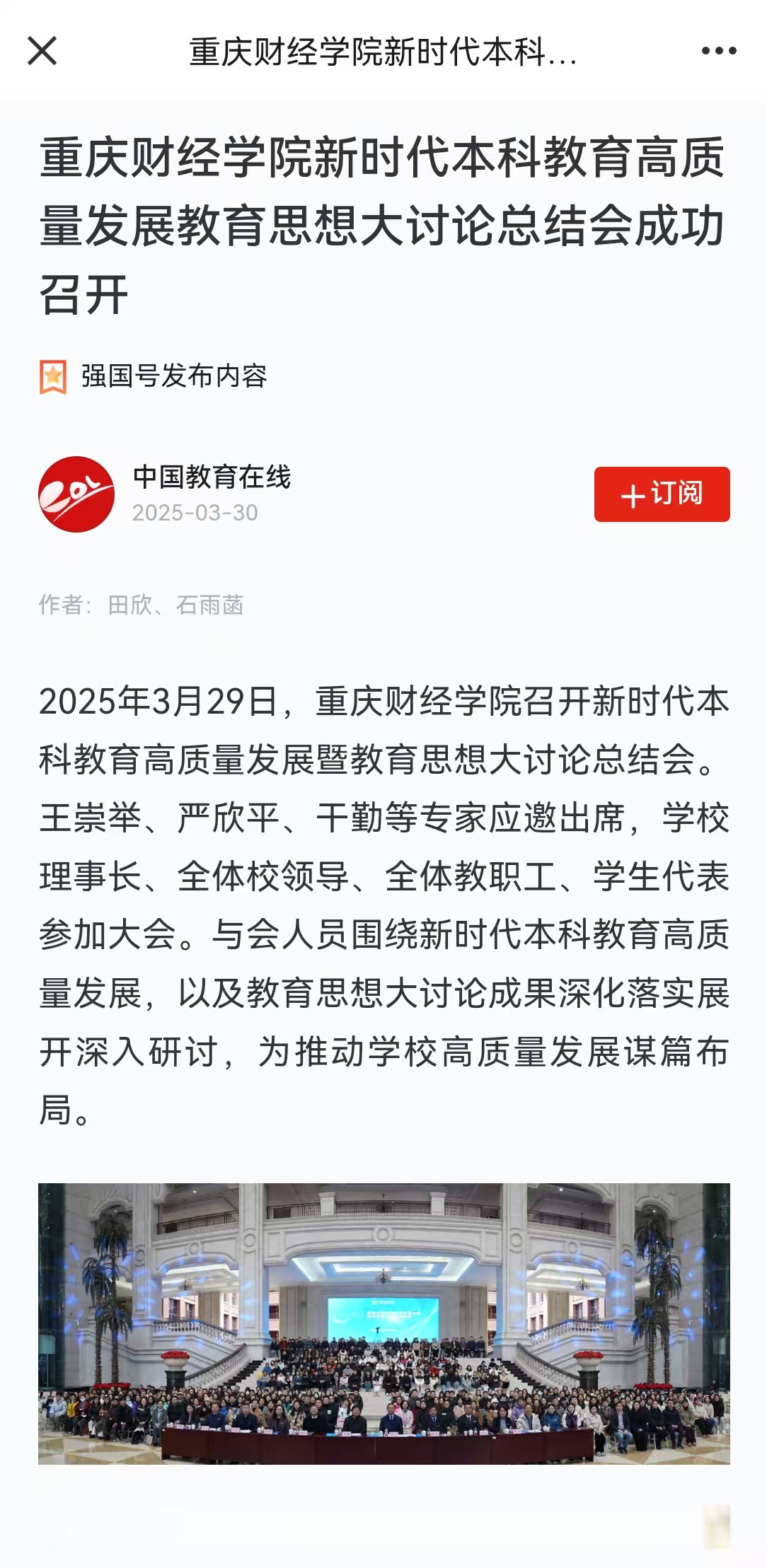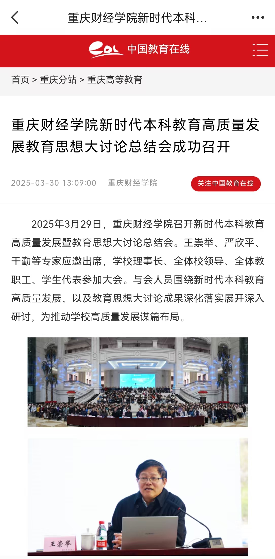 澳门新葡京博彩新时代本科教育高质量发展暨教育思想大讨论总结会成功召开,为澳门新葡京博彩本科教学高质量发展锚定了清晰方向,汇聚了强大合力。全体“重财人”将以此次会议为新起点,秉持团结奋进的精神,以务实的工作作风,扎实推进新时代本科教育高质量发展,锚定努力建设中国一流新型财经大学的宏伟目标,在新时代教育改革的浪潮中勇毅前行,不断开创学校高质量发展的新局面,向着教育事业的新高峰奋勇攀登。