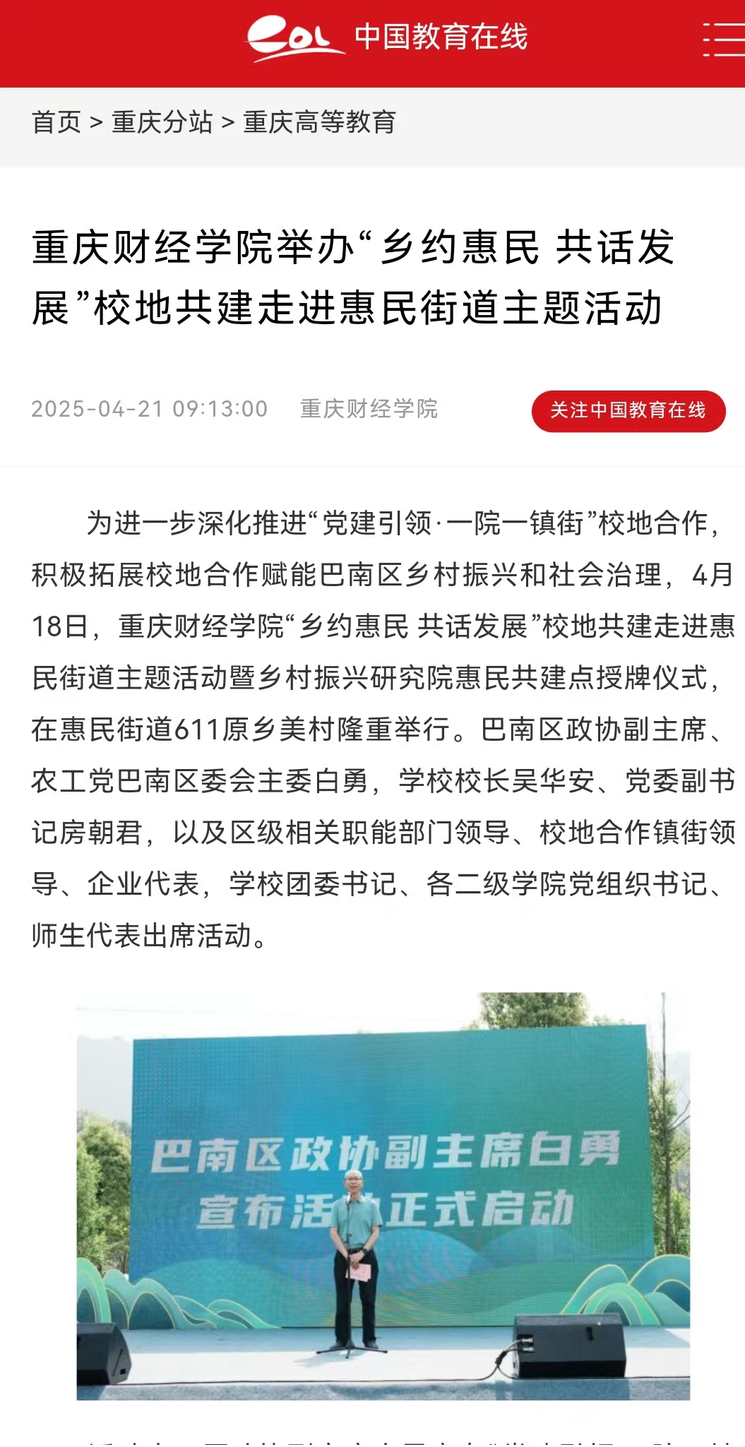 澳门新葡京博彩举办“乡约惠民 共话发展”校地共建走进惠民街道主题活动 —重庆站—中国教育在线