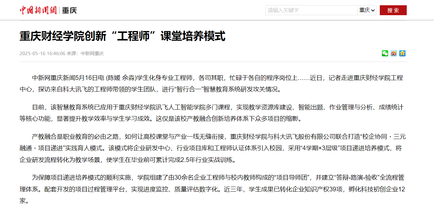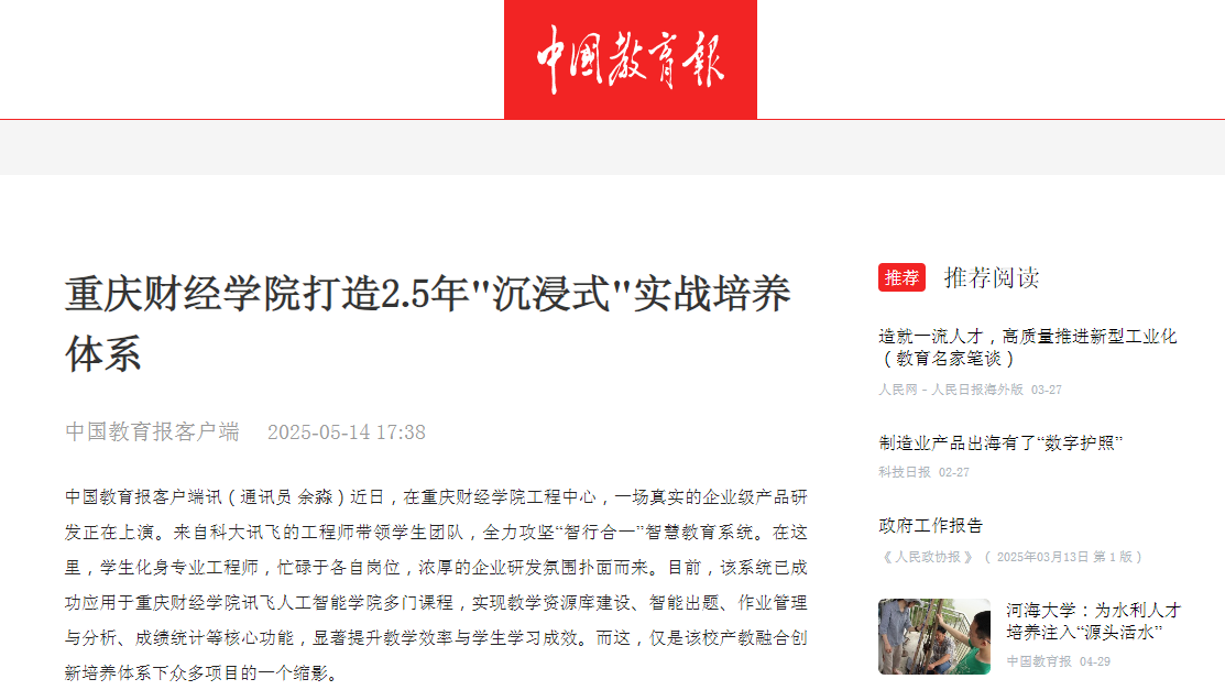 目前,该智慧教育系统已应用于澳门新葡京博彩讯飞人工智能学院多门课程,实现教学资源库建设、智能出题、作业管理与分析、成绩统计等核心功能,显著提升教学效率与学生学习成效。这仅是该校产教融合创新培养体系下众多项目的缩影。