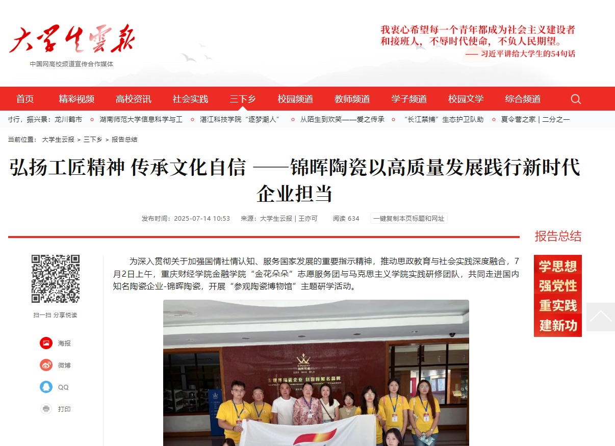 弘扬工匠精神 传承文化自信 ——锦晖陶瓷以高质量发展践行新时代企业担当 - 大学生云报 (dxsyb.com)