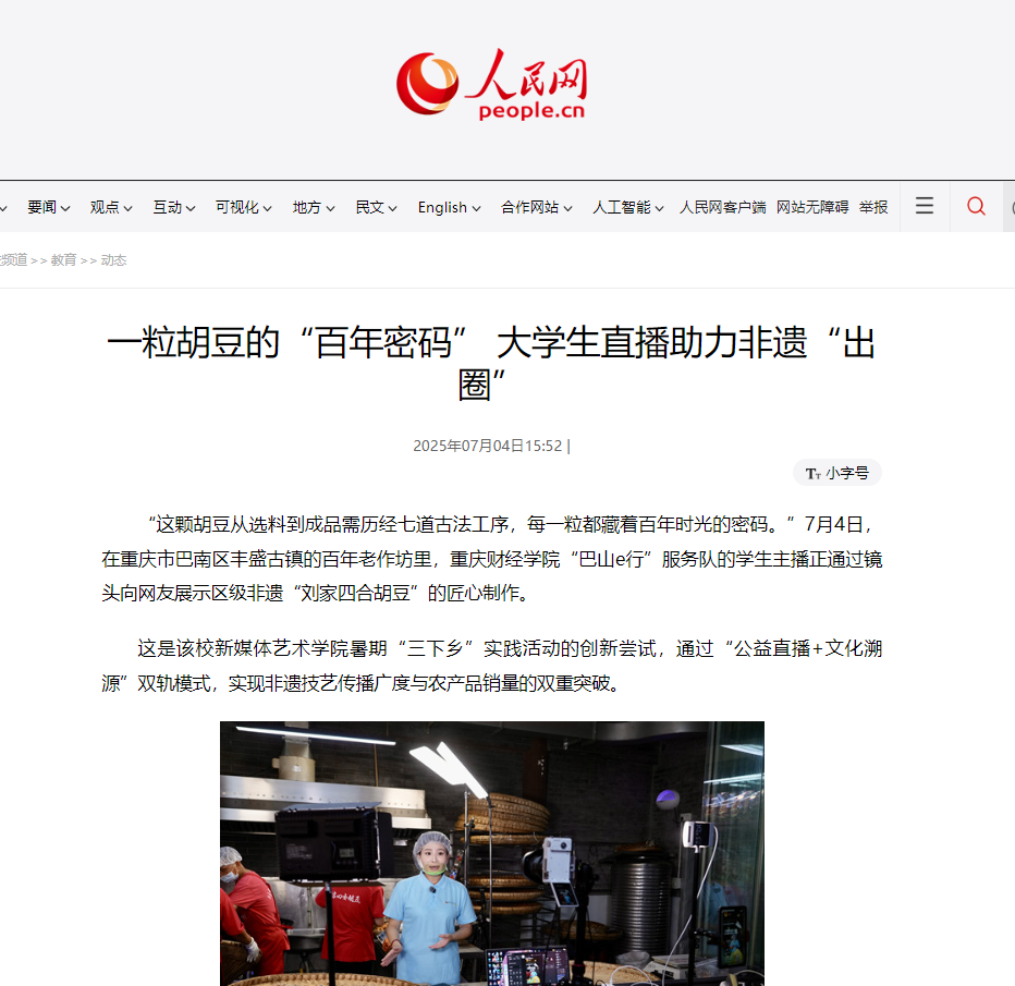 媒体链接:一粒胡豆的“百年密码” 大学生直播助力非遗“出圈” (people.com.cn)