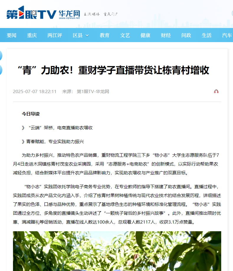 媒体链接:“青”力助农!重财学子直播带货让栋青村增收-华龙网 (cqnews.net)