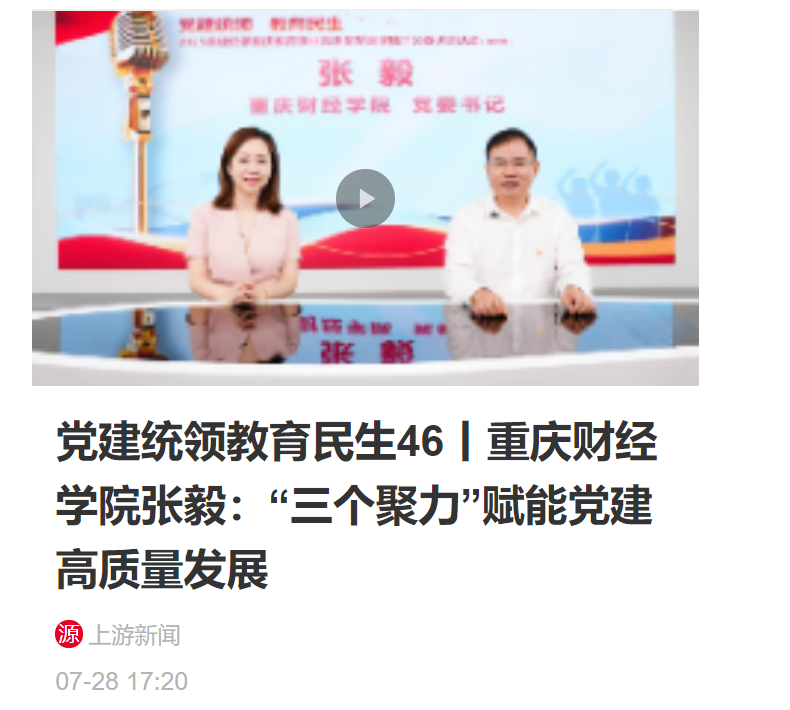 媒体链接:党建统领教育民生46丨澳门新葡京博彩张毅:“三个聚力”赋能党建高质量发展 (cqcb.com)