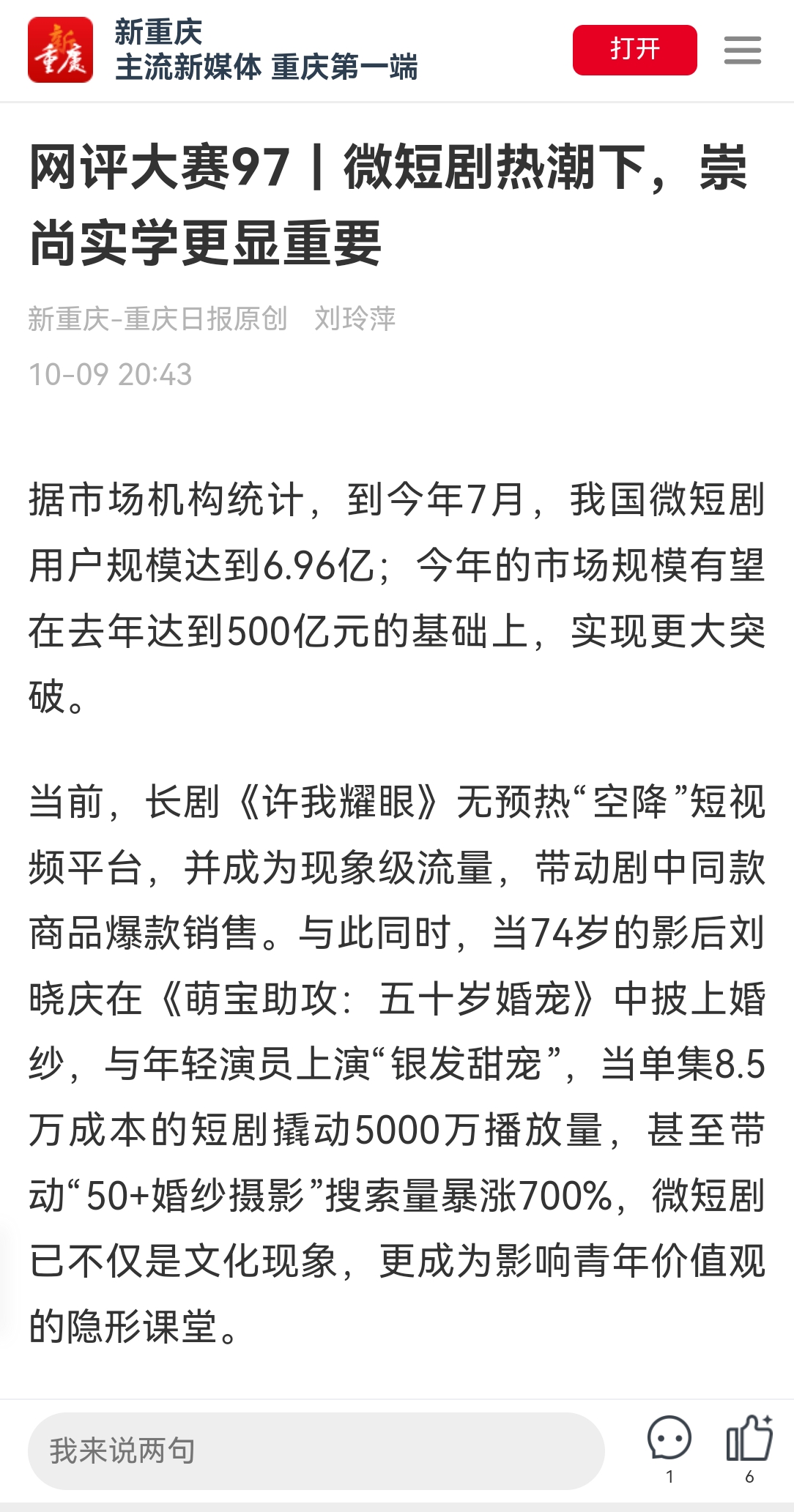 媒体链接:https://wap.cqrb.cn/xcq/NewsDetail?classId=2267&newsId=2438983