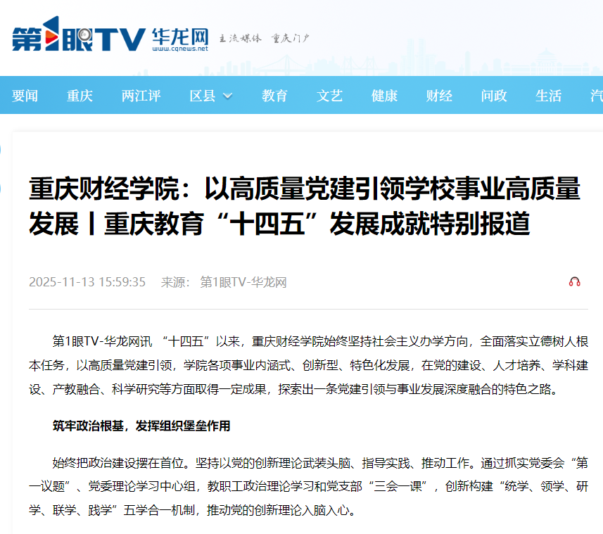 媒体链接:澳门新葡京博彩:以高质量党建引领学校事业高质量发展丨重庆教育“十四五”发展成就特别报道-华龙网 (cqnews.net)