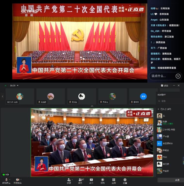 在收看报告的过程中,各分会场秩序井然。与会同志都聚精会神,认真记录了习总书记报告重点。大家密切关注会议进程,了解会议事项,在聆听习总书记报告的同时,深入思考相关内容。大家一致认为,党的二十大,是在我国在迈上全面建设社会主义现代化国家新征程、向第二个百年奋斗目标进军的关键时刻召开的一次十分重要的大会,是全党、全国各族人民政治生活中的一件大事。大家纷纷表示,将牢记总书记的嘱托,坚定不移听党话、跟党走,立志做有理想、敢担当、能吃苦、肯奋斗的重财青年,让青春在全面建设社会主义现代化国家的火热实践中绽放绚丽之花。