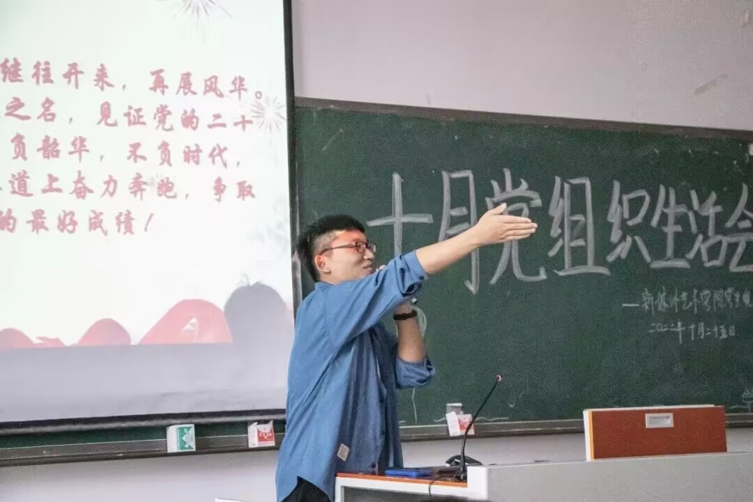 随后,同学们针对学习的内容进行交流发言。有同学说,要以努力学好专业知识为目标,以更扎实的能力为祖国的第二个百年目标贡献自己的力量;也有同学表示要始终牢记党员使命,脚踏实地奋进新征程……最后,倪彬同志总结出新时代的青年人应该“有能力、有理想、有担当、有行动、有毅力”,每一个词的背后都是同学们在向祖国宣告“请党放心,强国有我”的誓言。