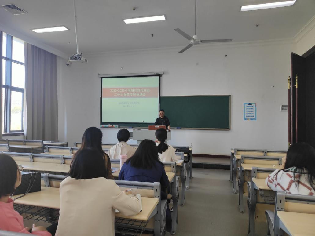 2022年11月2日中午,马克思主义学院形势与政策课程组第二次集体备课会在教学楼1505开展。会议伊始,各组的小组长就课件展示内容进行说课、讲课,并阐释上课主要内容,随后,各课程老师就课程的着力点、侧重点、支撑点、关键点发表了自己的看法。最后,周敏做了总结发言,希望老师们把党的二十大精神讲深、讲透、讲活,使党的二十大精神能真正的“入耳”“、“入脑”、“入心”,让二十大精神在学校教育中落地生根、见行见效。