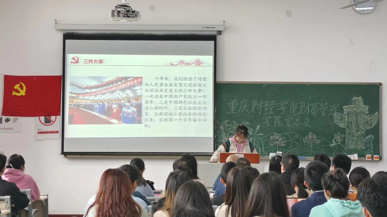 首先,学生党员王丹同志分别从“第一生产力”“第一资源”“第一动力”这三个方面带领大家解读二十大报告关键词,深刻认知教育、科技、人才是全面建设社会主义现代化国家的基础性、战略性支撑。在中国共产党的领导下,我们有计划、有目标、全面的进行发展,走出中国特色社会主义新道路,必须坚持科技是第一生产力、人才是第一资源、创新是第一动力,深入实施科教兴国战略、人才强国战略、创新驱动发展战略,开辟发展新领域新赛道,推进国家经济高质量发展。