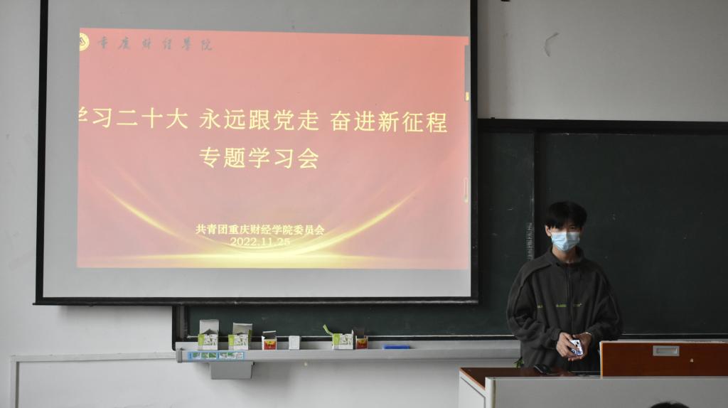通过学习同学们认识到应认真践行党的二十大精神,勇担新时代青年之责,主动追求进步、自觉当好模范,为中华民族伟大复兴贡献更多青春创造力,引领重财广大青年在全面建设社会主义现代化国家的火热实践中绽放绚丽之花。