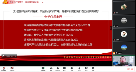学习二十大,引领新发展。为深入学习宣传贯彻党的二十大精神,推动党的二十大精神宣讲进校园,软件学院与新媒体艺术学院邀请到校长助理张立教授作为主讲嘉宾于12月26日上午以线上形式举行了学习宣传贯彻党的二十大精神宣讲会。会议由新媒体艺术学院党总支负责人甘雪梅主持。