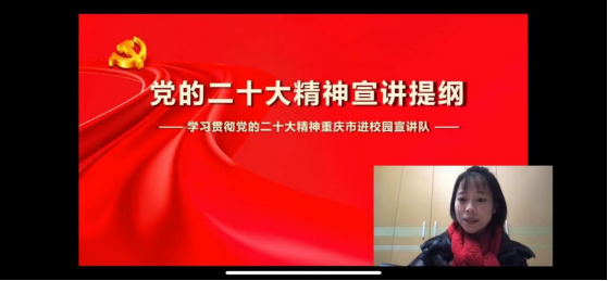 为深入学习贯彻党的二十大精神,全面贯彻习近平新时代中国特色社会主义思想,会计学院副院长李倩老师于2022年12月29日以钉钉线上直播的方式为2020级学生进行党的二十大精神宣讲。