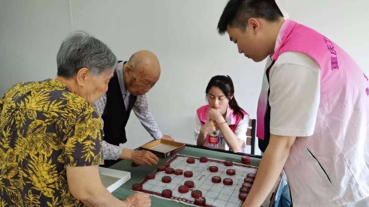 经前期沟通,金融学院党员服务分站志愿者团体有序地分成了三组,分别就环境清洁、慰问关怀与参观学习方面展开了志愿服务活动。活动中,青年志愿者们整理清扫庭院,对老人嘘寒问暖,陪着老人象棋,倾听老人烦恼,分享欢乐趣事和美好回忆,使得老人们神采奕奕、眉欢眼笑。