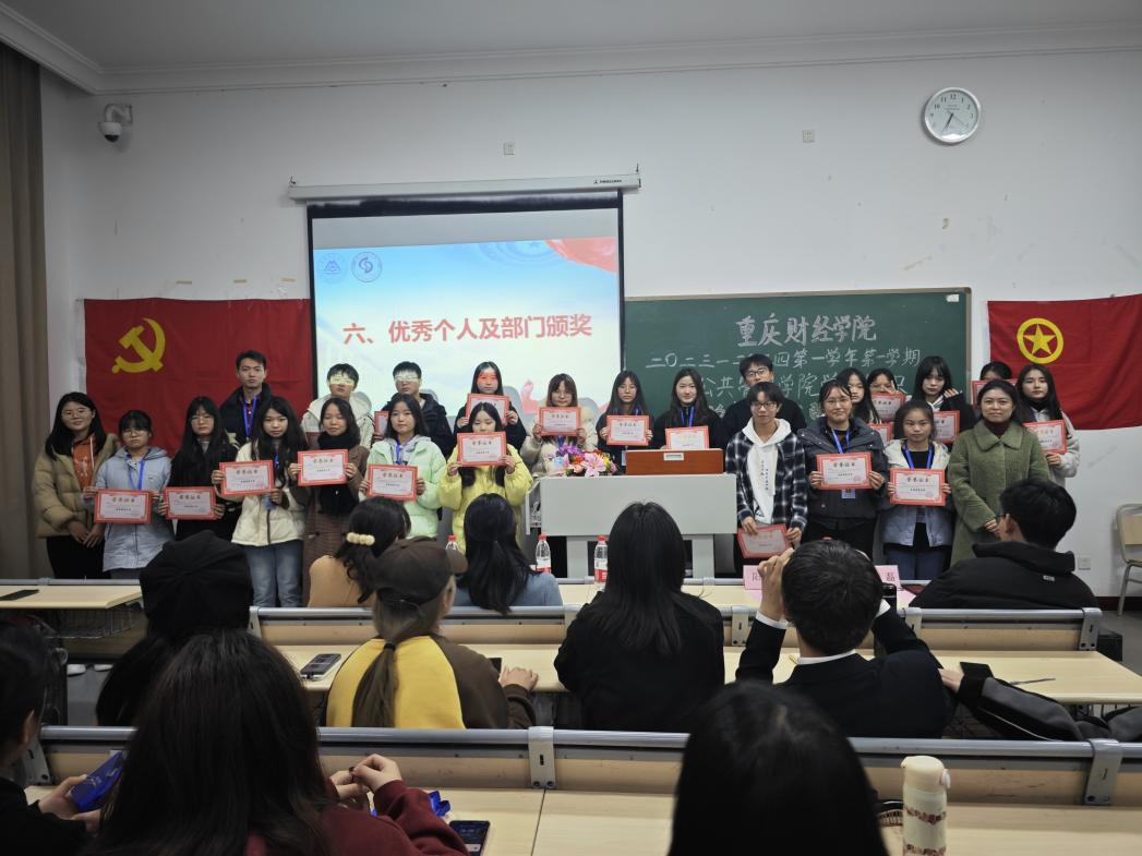 学院老师为本学期表现优秀的部门和个人进行颁奖,鼓励同学们继续在各自工作岗位上尽职尽责,为学院建设发展添砖加瓦、贡献力量,同时,珍惜历练的平台与机会,提升能力,不断成长。