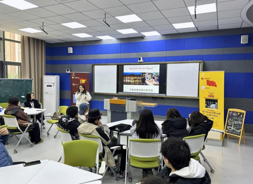 活动中,同学们以提问形式开启了对西班牙的好奇之旅,有关于未来就业与发展、西班牙风土人情、西班牙留学生活等的问题。廖老师真诚的建议与解答使学生们进一步了解了西班牙文化、产业以及学术领域,为提升同学们的国际视野和跨文化交流能力提供了宝贵建议。