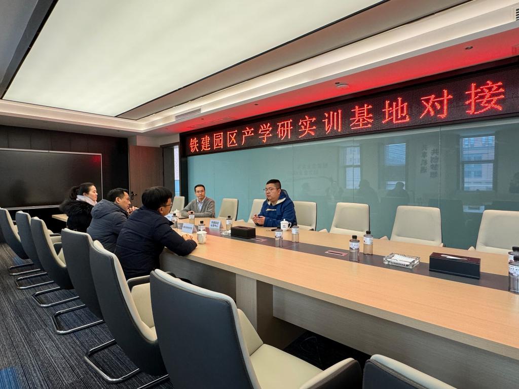 交流期间,郑毅围绕产业园的发展定位、运营情况和未来规划向学校与会人员进行讲解。乐晓勇则为企业方详细介绍了学校总体情况、产教融合育人成效和人才培养模式等内容。随后,双方围绕人才培养质量提升、校企合作方向、学生就业渠道拓展等方面内容进行深度交流。