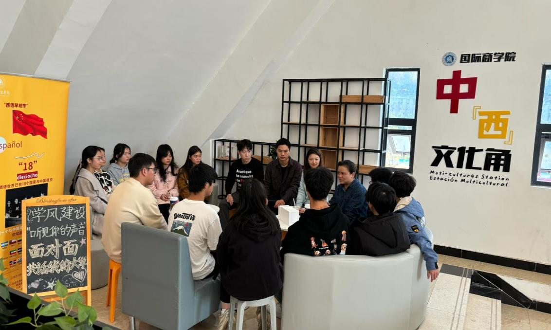 为促进学风建设,搭建职能部门中层干部深入基层与学生交流的平台,在我校欧美同学会的协助下,11月28日中午,国际商学院在我校中”西”文化角成功举办学风建设“听见你的声音”系列活动:面对面·共话我的大学。本次活动特邀我校欧美同学会会长、产业办公室副主任、留法博士王晓颖副教授担任主讲教师。活动面向23级工业工程(中外合作办学)专业学生。
