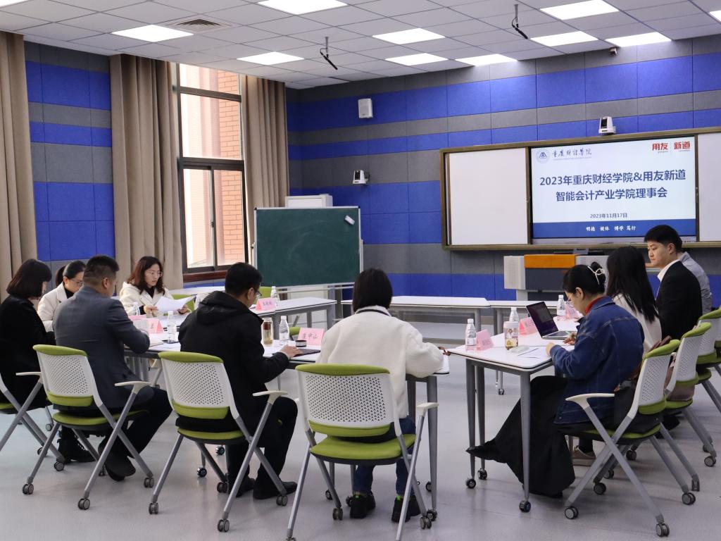 李倩院长向理事会汇报了2023-2024学年用友新道智能会计产业学院重点工作。