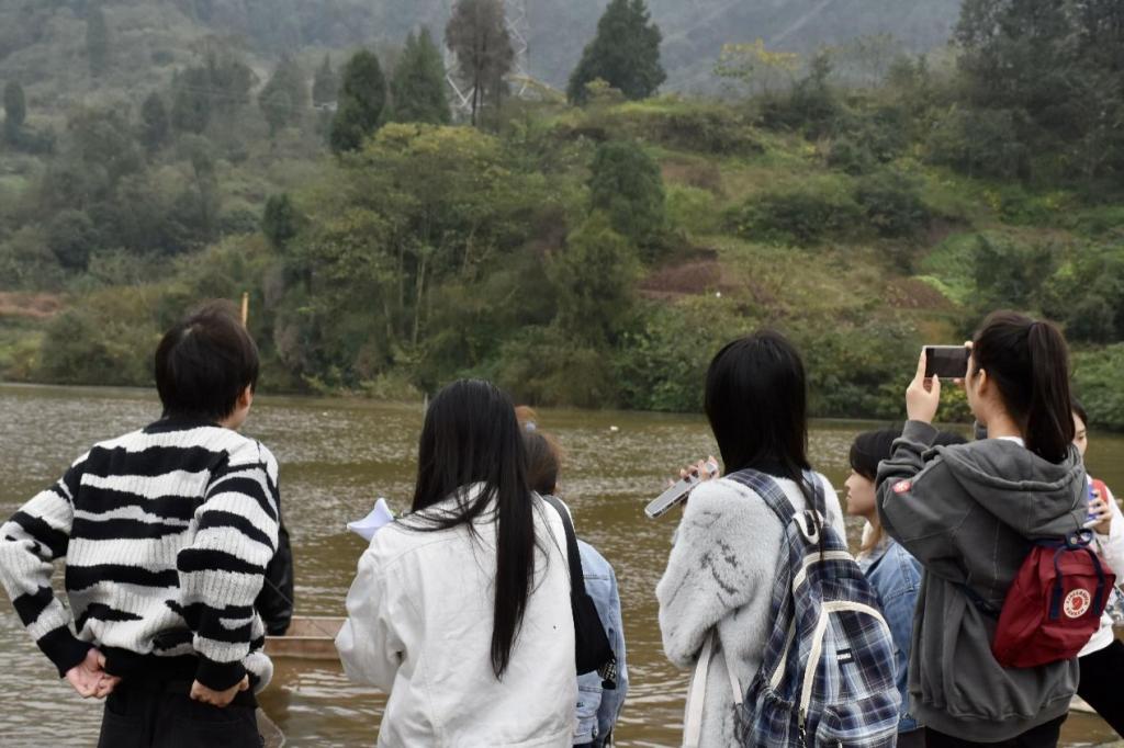 随后,调研团到访了以密集养殖为特点的水产养殖地“花溪谷”,在了解完养殖地基本信息后,王艺燃副书记向养殖户询问了鱼苗种类和来源、鱼货品相与质量等方面的问题,并得知,由于近几年市场行情低迷,商业形态变得单一、业务范围愈发狭窄。就此,调研团向当地养殖户提出了两点建议:一是科技助农和文旅助农。建议养殖销售要紧随科技发展浪潮,利用网络交易,扩大目标客户群,加长供应链;二是通过文旅强农,结合养殖业资源优势,打造特色化旅游品牌。