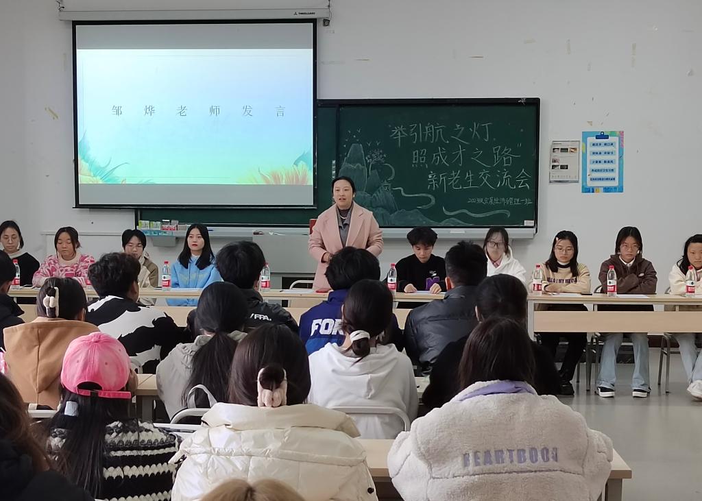 新生有“惑”,老生有“货”。为帮助大家更好地规划学习生活,了解专业发展方向及趋势,进一步增强学习动力,11月22日中午,我校新媒体艺术学院2023级会展经济与管理一班在教学楼1314教室召开“举引航之灯,照成才之路”新老生交流会。会展经济与管理教研室主任邹烨、辅导员游思聃及本专业各年级优秀学生代表参加了本次交流会。会议由2023级会展班班长杨杰同学主持。