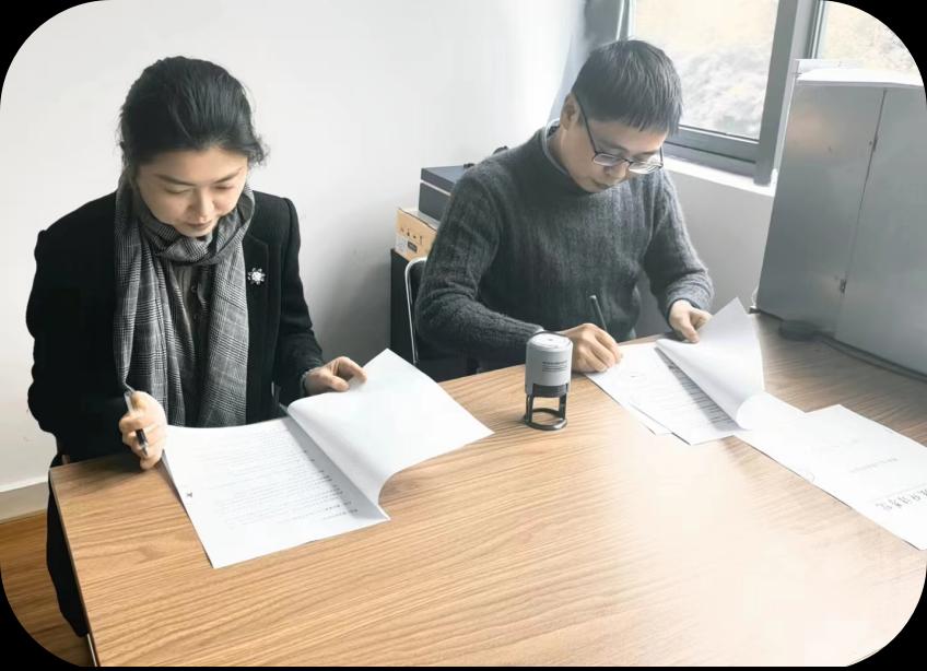 最后,公司现场与表现优异的两位应届毕业生签订三方就业协议。接下来,学院将全面启动产教融合项目,通过校企双方共同努力、优势互补,搭建平台强化学生实践能力锻造,提升人才供需匹配率、人岗胜任度,共同把校企合作推向新的高度,最终实现校、企、生三方共赢。