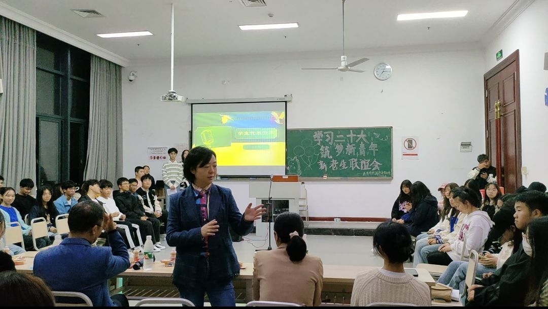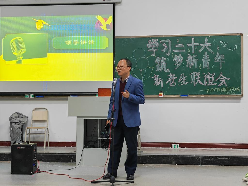 韶华不负新启程,青春作笔书华章,10月26日,我校经济学院“学习二十大,筑梦新青年”新老生联谊会在教学楼1614教室举行。经济学院院长李政军,经济学院党总支书记刘莉,经济学院全体辅导员,2023级新生代表及各年级学生代表一起参加了联谊会。