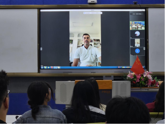 接着,西班牙拉科鲁尼亚大学学术带头人Juan Carlos Izquierdo通过线上方式介绍了拉科鲁尼亚大学及工业工程专业的基本情况,表示校方非常重视与我校的合作,希望同学们认真、努力学习西班牙语,学习专业知识,争取获得去拉科鲁尼亚大学学习交流和继续深造的机会,希望早日与同学们在线下见面。