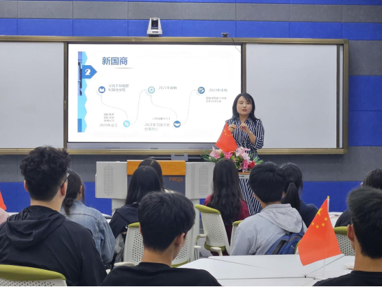 活动伊始,黄兰院长从“六新”——新重财、新国商、新财经、新专业、新人才、新相遇六个方面对学校和学院的基本情况进行介绍,并给同学们提出关于大学生活的四点建议:自爱自律、规划管理、热爱但克制、坚持并学会取舍。此外,黄兰院长还分享了西班牙优美的风景和灿烂的文化。同学们被西班牙的魅力所深深吸引,对未来的学习和生活充满兴趣和热爱。