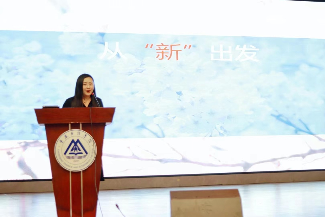 在第二项仪程中,刘贤洲主任做毕业论文、实习动员大会。她首先为大家介绍了毕业实习目的、时间、方式、要求、考核及成绩评定、实习的纪律与安全;接着,介绍了毕业论文相关内容,为同学们讲解了论文写作的目的及重要性、毕业论文各个环节的工作要求和答辩要求以及注意事项,最后,她向同学们分享了书籍《你当像鸟飞往你的山》,鼓励大家无论何时都要克服困难,去拥抱生命的无限可能,飞往自己的那座山。