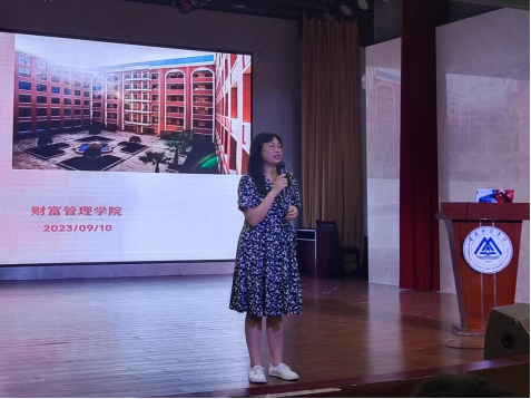 踏入新校园,开启新征程。为帮助2023级新生适应大学学习生活,教育引导其筑牢理想信念根基、激发其专业学习动力,促进学生全面发展。9月10日下午,我校财富管理学院在学术报告厅开展2023级新生主题教育。财富管理学院党总支书记宋钰静出席会议,2023级全体新生参加会议,2023级新生辅导员古元碧老师主持会议。