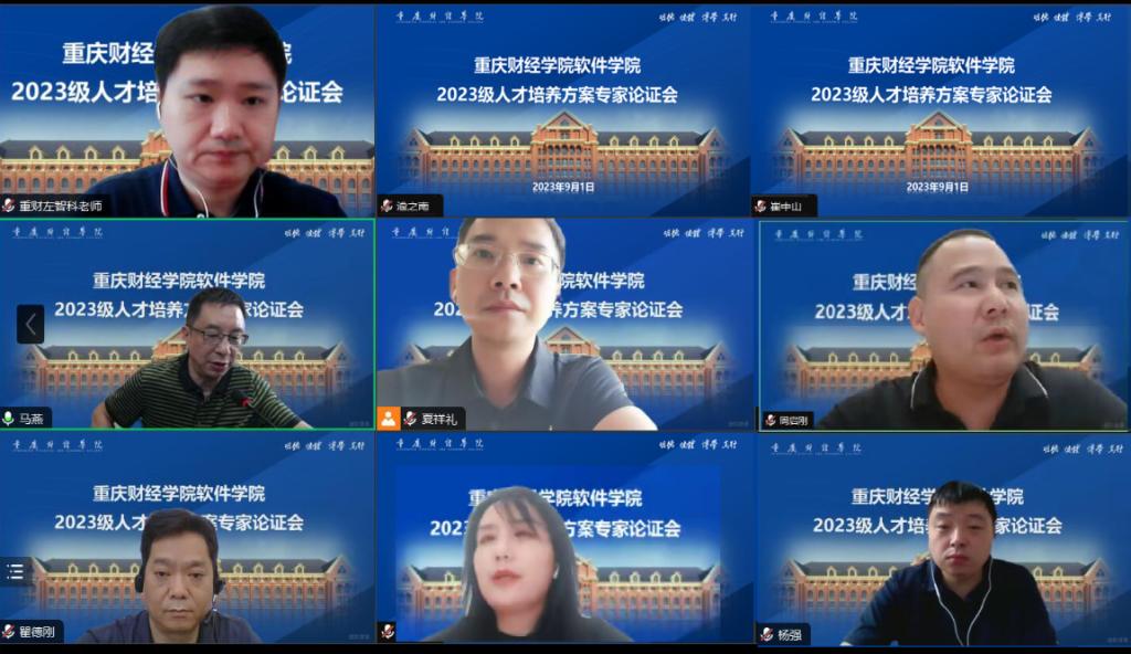 为提升持续推进学院“五优”应用型本科人才培养质量,优化软件学院各专业人才培养方案,凝练专业特色、提升专业建设与教育教学水平, 9月1日,我校软件学院线上召开人才培养方案专家论证会。本次会议邀请到重庆师范大学智慧教育研究院院长、重庆计算机学会副理事长、重庆人工智能学会副理事长马燕教授;重庆市高校创新群体首席专家、重庆工商大学教授、硕士生导师、讯飞人工智能学院院长周启刚教授;我校软件学院院长瞿德刚博士;中软国际卓越研究院副院长/工业互联网研究院执行院长杨强四位专家进行评议论证。我校校长吴华安教授、校长助理崔中山、教务处处长黄兰、软件学院副院长夏祥礼及相关专业负责人参会。会议由夏祥礼副院长主持。